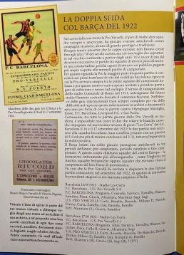 Barcelona il 16 e il 17 settembre del 1922; le due partite non sorrisero alla squadra bicciolana (una sconfitta pesante con un passivo di 5-0 ed una più di misura conclusasi sul 3-1), tuttavia